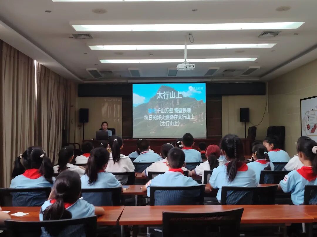 在二楼会议室,同学们观看了伟大抗战歌曲《在太行山上》和《粉碎日军九路围攻》视频,进一步加深了同学们的爱国热情。