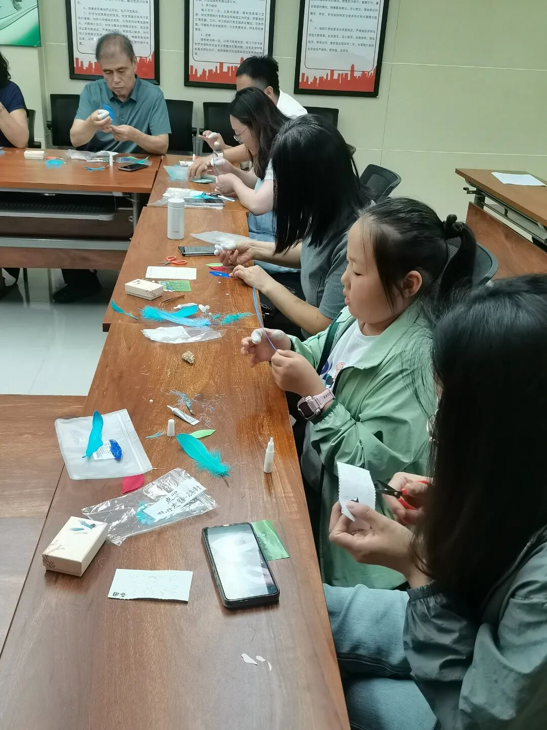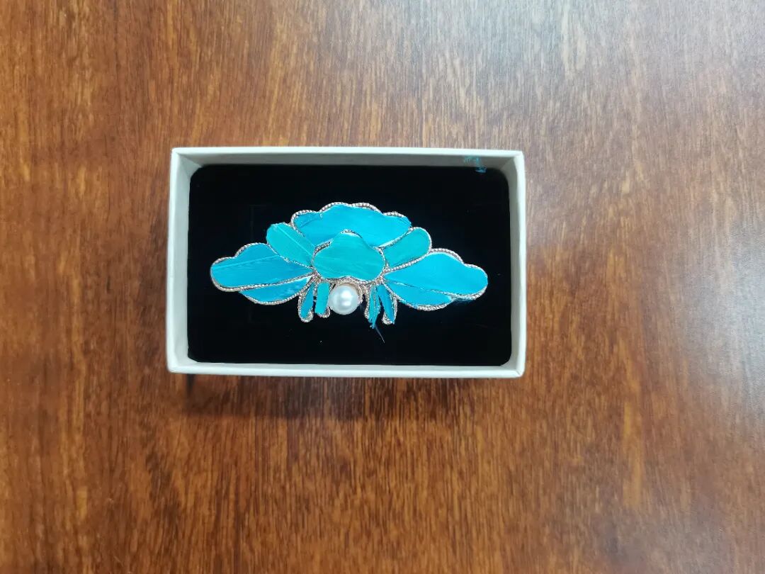 在点翠手工体验环节,大家从选择羽毛、修剪羽毛、涂抹胶水,到粘贴羽毛、调整形状,将自己的创意融入其中,制作出了一枚枚精美的点翠胸针。