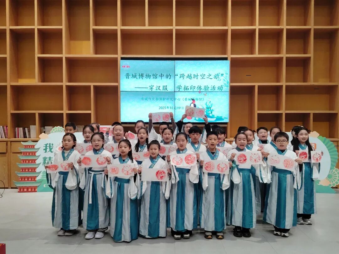 10月19日下午,晋城博物馆中迎来了一群衣袂飘飘、身着汉服的孩子们,来自晋城市城区古书院矿小学校的同学们,通过一场博物馆中的“跨越时空之旅”,感受家乡历史和中华文明的璀璨多姿。
