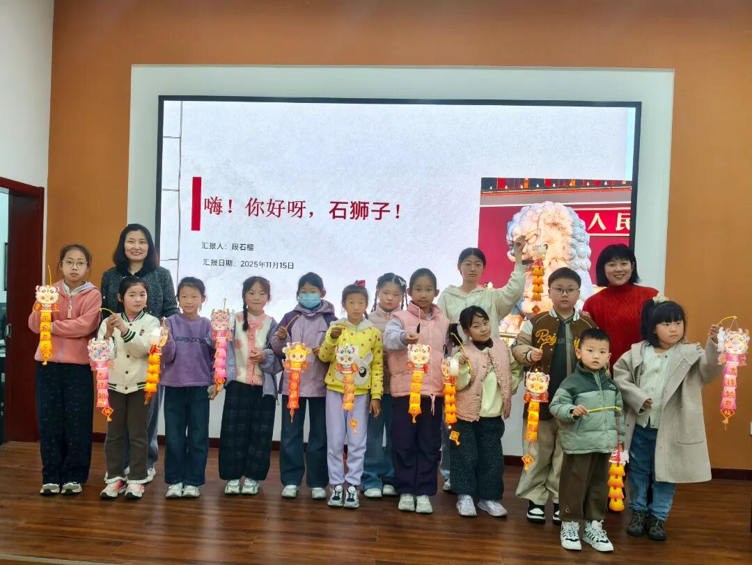 手工环节中,家长与孩子默契配合共同制作了石狮子主题串串灯。在动手实践中进一步巩固所学,也将文化符号转化为一件件可触可感的小作品。
