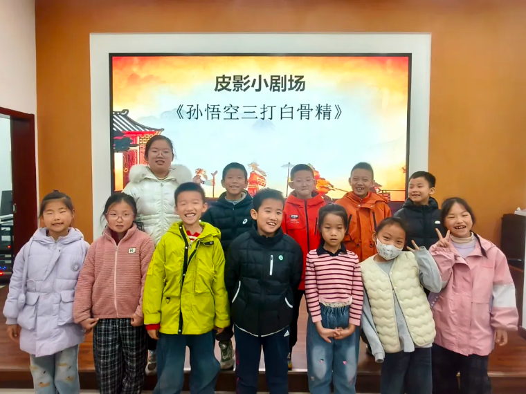 如果说文化讲解是知识充电,那么皮影演绎环节便是欢乐实践。原本历史博物馆的李老师率先垂范,亲自饰演猪八戒,并指导孩子们化身“皮影小传人”,从配音分配、操作分配、台词练习到皮影操控进行了细致排练。活动高潮部分,李老师操控着猪八戒皮影,与扮演唐僧、孙悟空的孩子们默契配合,在白色幕布后光影交错,生动演绎了《孙悟空三打白骨精》的经典片段。一个个皮影角色在孩子们手中活灵活现,台下掌声与欢笑声此起彼伏,气氛热烈。