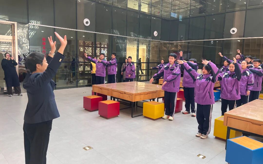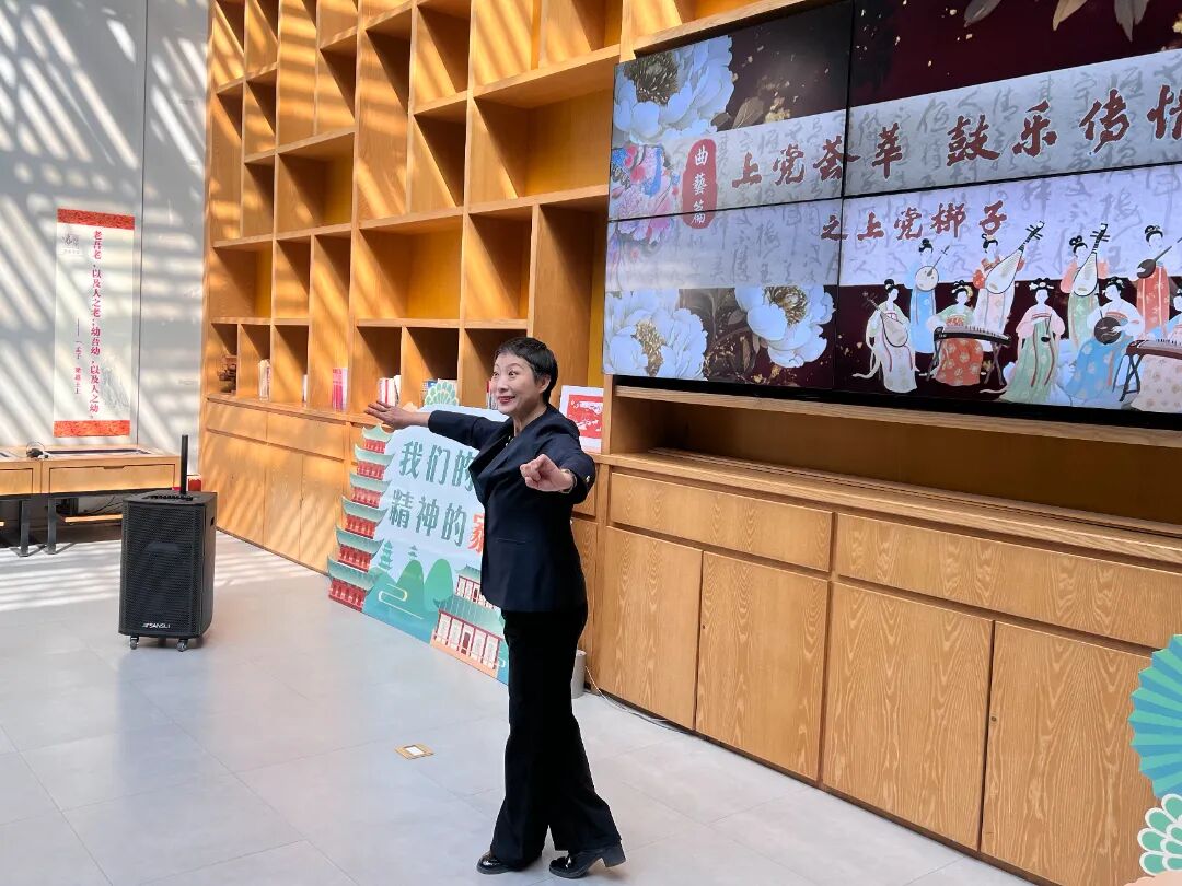 如果说展陈是凝固的历史,接下来的表演互动便是鲜活的传承。上党梆子名家卢爱琴老师应邀而至,表演经典唱段《三关排宴》。将上党梆子慷慨激昂、朴实粗犷的艺术特色展现得淋漓尽致。同学们屏息聆听,仿佛穿越时空,与百年戏曲对话。互动环节中,大家练习开嗓、学习身段,稚嫩的声线里,文化种子悄然发芽。