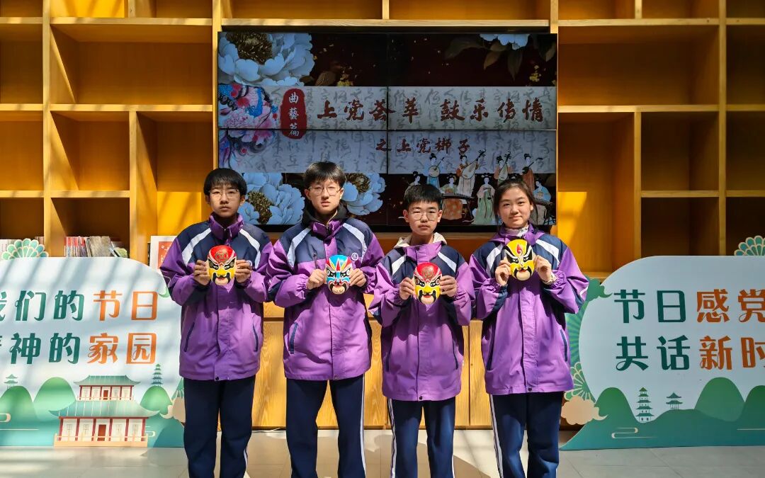 脸谱——戏曲无声的语言。知识小课堂上,红忠勇、黑刚直、白奸诈……色彩密码被一一破解。当上党梆子脸谱与京剧脸谱同框出现,同学们恍然大悟:地方剧种与国粹艺术,血脉相连,密码相通。